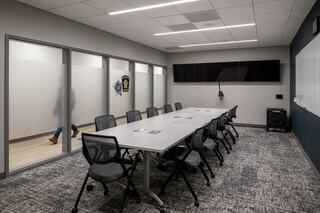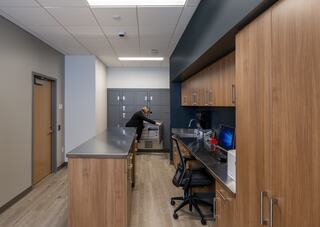 Between private space and shared amenities, the Police Department now has access to modernized workflows and improved wellness spaces. The new facility promotes efficient daily operations and modernized workspaces and shared amenities improve. Clear boundaries between public and secure areas ensure safety and accessibility. Officers benefit from improved training and wellness areas, streamlined circulation and flexible office spaces that encourage teamwork. The building’s design integrates security, functionality and a welcoming environment for both staff and community members. Officers also have access to shared building amenities where they will overlap and interact with Village and School District staff.