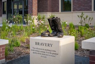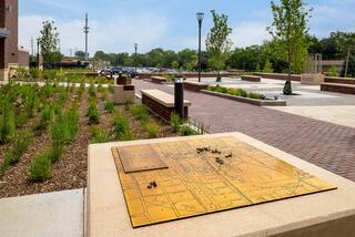 A history of service and civility welcomes visitors at the center’s entrances. The Blackburn Civil Rights Plaza honors the memory of Israel (Isrel) Blackburn. After having been enslaved for more than 45 years and serving as a Union soldier in the U.S. Civil War, Blackburn moved to what is now Downers Grove and became one of its founders in 1873.