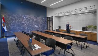 Having outgrown an existing 50-year-old station, Big River hired FGMA to design a replacement facility on adjacent property. The efficient, durable space serves several ambulatory crews and the community with rentable conference room and detention pond stocked with fish for general use.