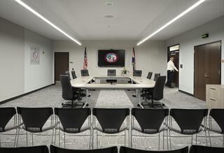The existing facility for the St. Louis region’s largest secondary call center was inefficient and inadequate for staffing needs. With a fully reconfigured floor plan organized by department, adjacencies streamline workflows. A dedicated wellness room supports dispatcher mental health.