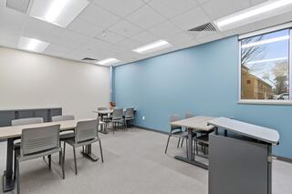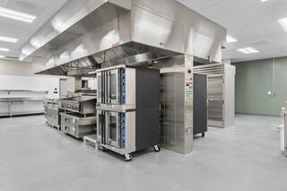 The dining center serves 250 trainees three meals a day, with additional kitchen capacity for phased dining and special events. The design conveys a bright, modern, healthy environment with large windows highlighting activity within, as well as natural views, outdoor and private dining areas and admin space.